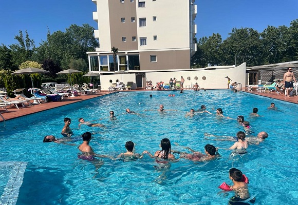 Der Pool des Hotels Sabrina Village wird täglich von unserem Personal gereinigt und ständig überwacht: hier können Sie sich entspannen, aber auch aktiv sein, dafür sorgen schon unsere Animateure! Bei Wassergymnastik und sonstigem Sport, bei Kopfsprung-Wettkämpfen und Pizza-Party, Nutella Party oder Wasserbasket und Gruppentanz wird unseren Gästen Spaß und Möglichkeit zum Sport geboten. Ebenfalls im Park liegt das Solarium mit Liegen, um bei Sonnenuntergang einen gepflegten Aperitif oder Cocktail zu genießen.