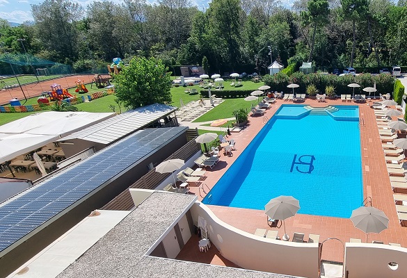 Im Park, neben dem Pool, liegt unser Solarium, wo Sie sich voll entspannen und den Tag mit einem Aperitif des Hauses ausklingen lassen können.