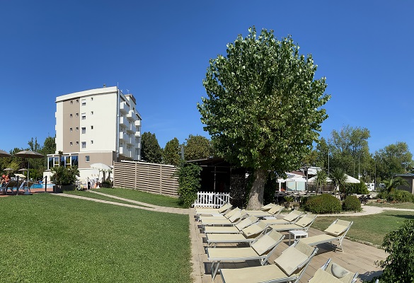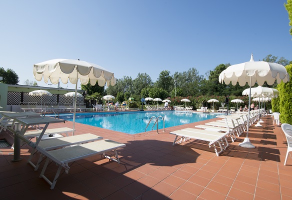 Im Village-Park liegt der private Pool des Hotels Sabrina, ideal für Groß und Klein. Mit fast schon Wettkampfausmaßen (25 m) hat der Pool eine Tiefe von maximal 2,80 m bis 1,50 m und ist somit sowohl für Sportler geeignet, als auch für alle, die sich nach einem Tag am Strand noch einmal im Wasser entspannen wollen. An einem Ende des Beckens liegen der Jacuzzi und ein 50 cm tiefes Kinderbecken.