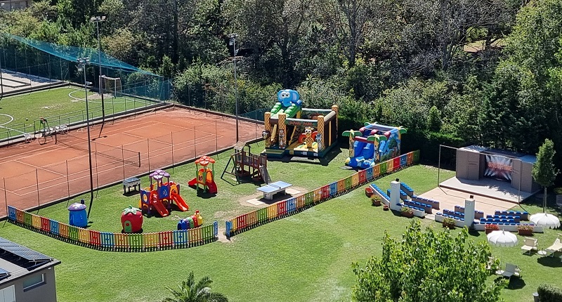Außerdem bieten wir Ihnen viele andere Unterhaltungs Aktivitäten für Erwachsene und Kinder sowohl innerhalb der Struktur wie Spielplatz und Schwimmbad, als auch außerhalb sowie Strandservice am Partner Strand.